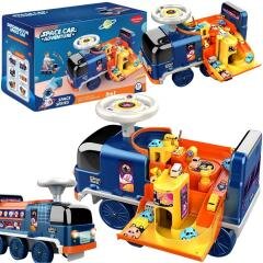 Jeździk - pojazd kosmiczny: Ten pojazd kosmiczny pełni kilka różnych funkcji, umożliwiając dziecku różnorodną zabawę. Może być wykorzystywany jako jeździk, który pozwoli dziecku jeździć po różnych powierzchniach, zapewniając bezpieczną i ekscytującą zabawę w ruchu. Dodatkowo, siedzisko rozkłada się, ukazując niesamowity tor samochodowy, a 4 autka w zestawie pozwalają na radosną zabawę. Zabawka jest doskonałym sposobem na różnorodną zabawę, która zapewnia wiele radosnych chwil.