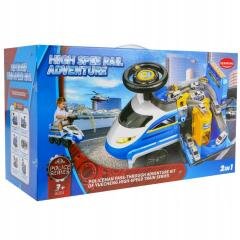 Jeździk to doskonały sposób na rozwijanie zdolności motorycznych i równowagi malucha. Wykonany z wytrzymałych materiałów, zapewnia bezpieczną zabawę zarówno w domu, jak i na zewnątrz podczas spacerów z rodzicami. Dodatkowym atutem są wysuwane podnóżki po obu bokach. Kierownica jest wyposażona w dwa guziki, dzięki którym kontrolować można efekty specjalne. Pojazd posiada 6 kół, na wzór pociągu, z czego dwa przednie są skrętne. Z tyłu jest chroniony panel z muzyką, opowiadaniami i odgłosami zwierząt (lektor nagrany w języku angielskim). Z przodu są świecące reflektory, a pod imitacją szybki - miejsce na drobiazgi. Kolejne miejsce na bagaż znajduje się pod parkingiem. Parking na samochodziki znajduje się pod siedzeniem jeździka i ma ruchome, ręcznie sterowane, elementy - winda, szlaban, podnośnik i kółko obrotowe. Do zestawu dołączone są małe autka (ok. 7 x 2,5 x 3cm), które idealnie pasują do parkingu.