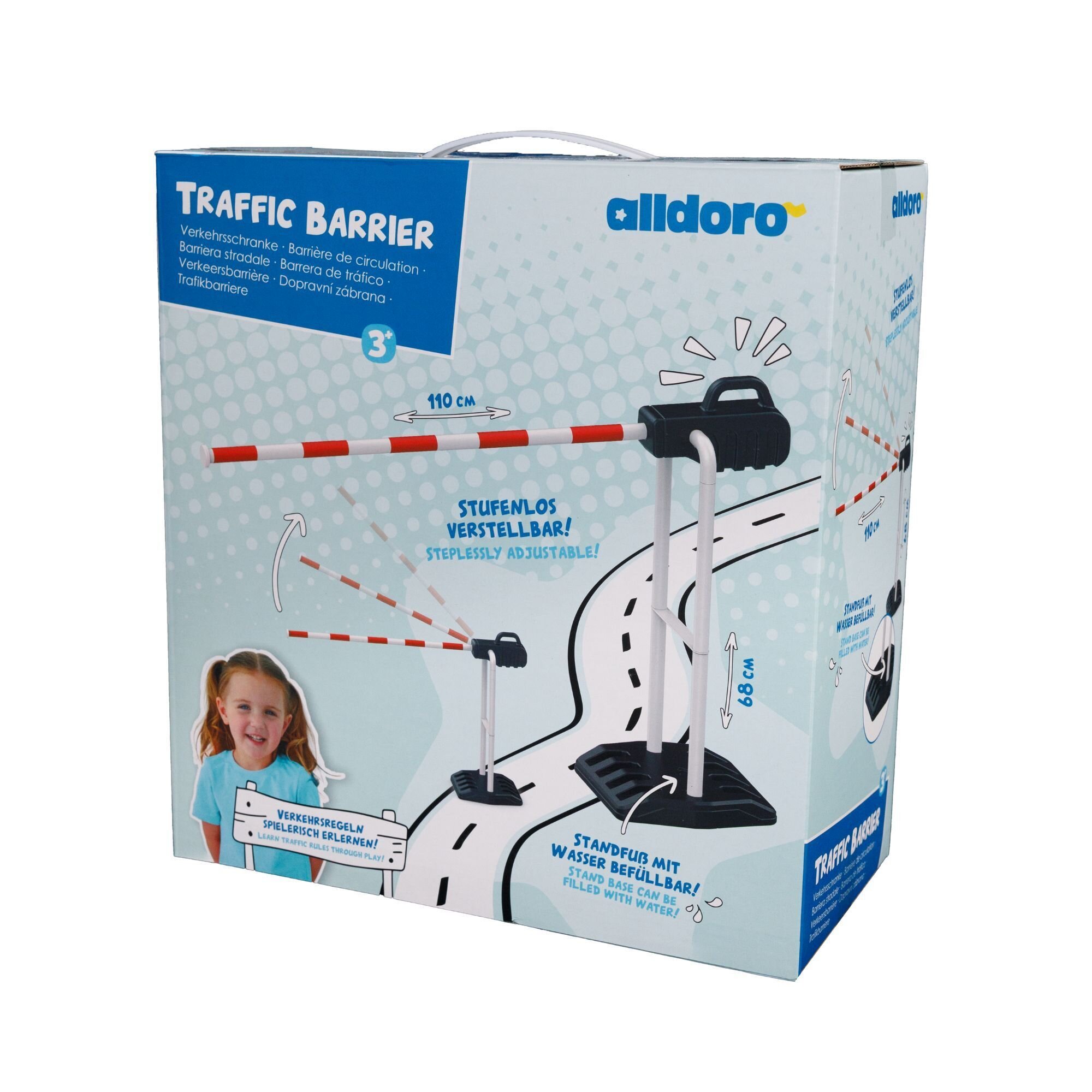 Dopravní zábrana o rozměrech: šířka 110 cm a výška 68 cm, se stabilní, širokou základnou, kterou lze naplnit vodou.