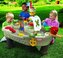Stół wodny "Statek Piracki" to prawdziwa gratka dla małych piratów. Bijąca z masztu fontanna i strzelanie z armatek wodnych zapewni moc wrażeń wszystkim miłośnikom mokrego szaleństwa. Płynąca z wierzchołka masztu (lub wlewana przez dziecko) woda - wprawia w ruch kolorowe młynki. Maluchy mogą podnosić i opuszczać kotwicę za pomocą korbki oraz obracać sterem. Zestaw zawiera dwóch zabawnych piratów, strzykającego wodą rekina, pompkę oraz zabawki przydatne do zabawy w prawdziwe wilki morskie.