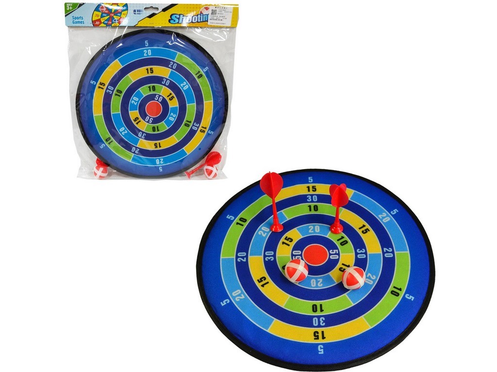 Terč se 2 šipkami a 2 míčky na suchý zipHračka je určena pro děti 3+.Rozměr hračky je 35 x 35 cm.Materiál hračky je textil a plast.Balení hračky je sáček s kartou.Produkt je určený pro kohokoliv.