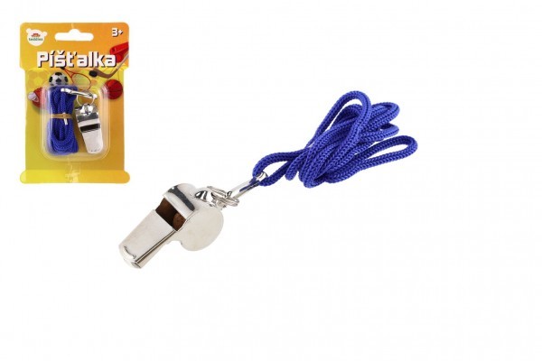 Píšťalka se šňůrkou kov/látka 5cm na kartě