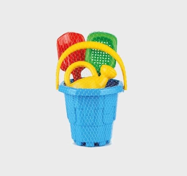 Komplet do piaskownicy zawierający: wiaderko, konewkę, grabki oraz łopatkę. Mix kolorów, towar wysyłany losowo.