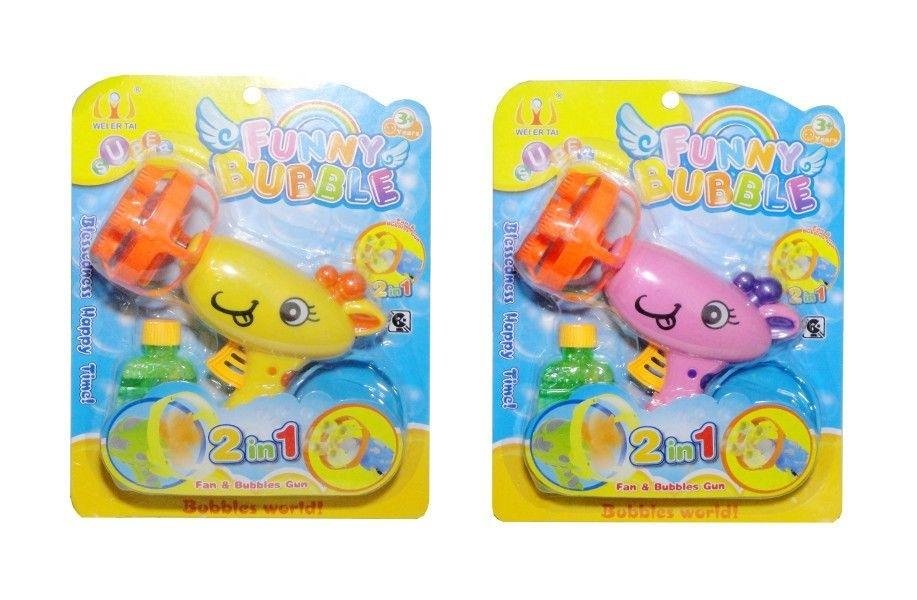 Kolorowa maszynka wraz z płynem do wytwarzania baniek mydlanych. W zestawie także miseczka gdzie uprzednio trzeba zanurzyć maszynkę, a następnie cieszyć się bańkami. Zabawka dla dzieci od 3 lat. Podane wymiary stanowią wymiar opakowania. Zabawka zapakowana w kartonową podstawkę z przezroczystym kloszem.