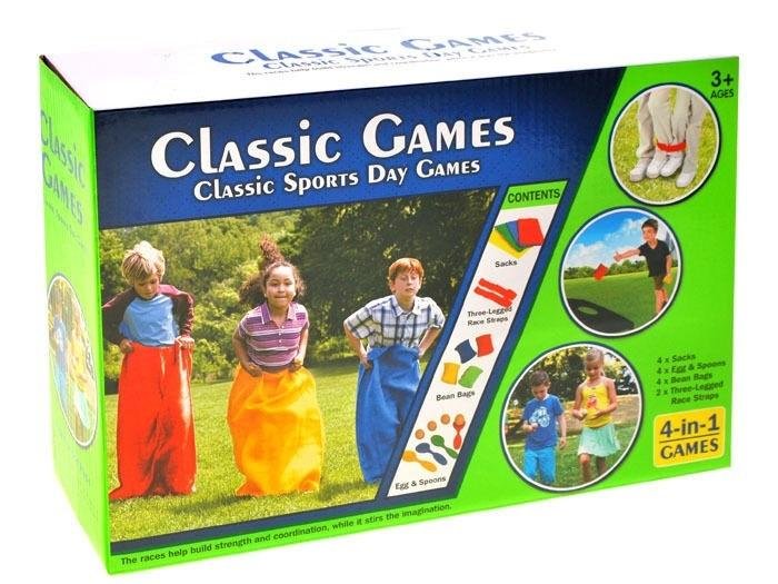 Zestaw gier piknikowych to aż cztery różne zawody sportowe i sprawnościowe na piknik lub wycieczkę. Pierwszą zabawą są klasyczne wyścigi w workach. Każdy z uczestników wchodzi do worka obiema nogami i w podskokach musi jako pierwszy pokonać metę. Kolejną grą jest wyścig z jajkiem na łyżeczce. Do zestawu załączono plastikowe jajka atrapy. Trzecią konkurencją zawodów piknikowych to wyścig trzech nóg. Zawodnicy dobierają się w pary i przy pomocy specjalnej opaski łączą ze sobą swoje nogi tak że wspólnie muszą poruszać jedną z nich. Ostatnią zabawą jest rzucanie do celu. W zestawie znajdziemy cztery woreczki wypełnione grochem. W każdej z konkurencji można wyznaczyć prostą trasę lub z przeszkodami i zakrętami dopasowując ją do umiejętności zawodników.