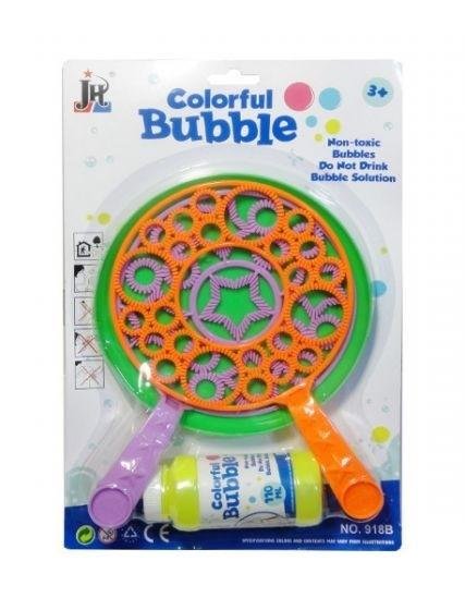 Zabawka do baniek mydlanych. Odkręć część z płynem do baniek. Wlej płyn do podstawki. Zanurz w płynie część z kijkiem następnie wyciągnij i dmuchaj lub machaj, wtedy zaczną pojawiać się bańki. Zabawka zapakowana w kartonową podstawkę z przezroczystym kloszem. Produkt dla dzieci od 3 lat. Podane...