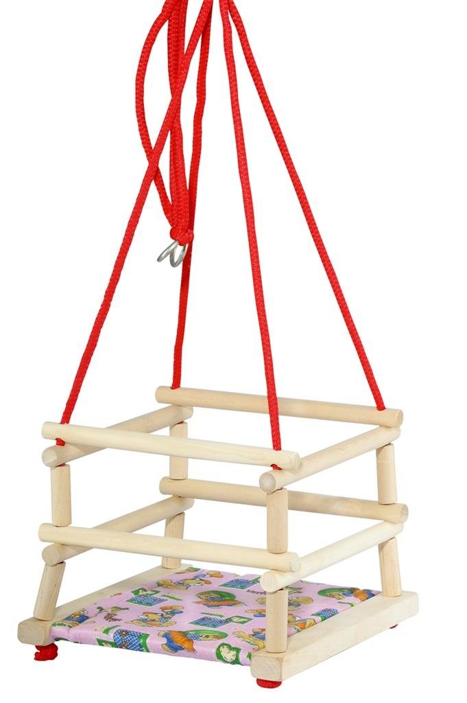 Zestaw składa się z huśtawki szczebelkowej oraz poduszki, dzięki której dziecko może siedzieć na huśtawce wygodnie i bezpiecznie. Produkt wykonany jest z naturalnego drewna. Maksymalne obciążenie 20kg. Kolorystyka poszczególnych elementów może ulec zmianie.