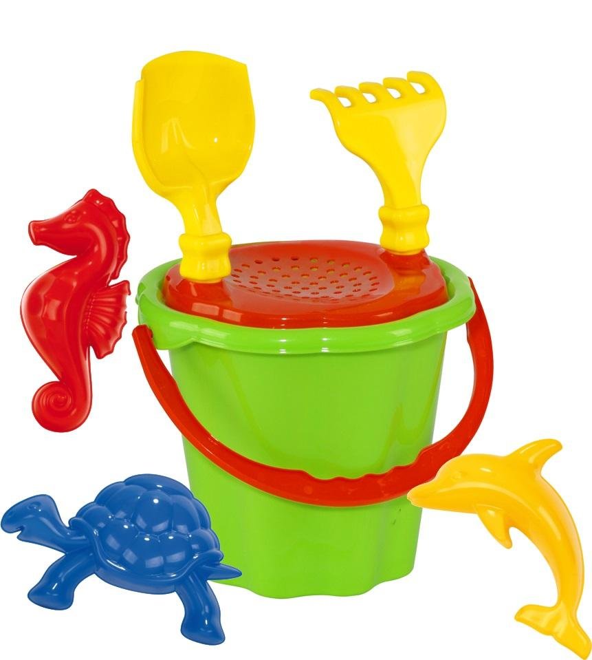 Zabawy w piaskownicy lub na plaży dostarczają maluchom wielu chwil beztroskiej radości. Spraw, aby czas spędzony w piaskownicy był dla Twojej pociechy jeszcze atrakcyjniejszy! W tej ofercie przedstawiamy atrakcyjny zestaw duże wiaderko i akcesoria do zabawy na plaży. Ten wielokolorowy komplet zawiera w sobie wszystkie elementy niezbędne do tego, aby zapewnić dziecku świetną zabawę! Duży zestaw do zabawy w piasku dla dzieci składa się z wielu elementów dużego wiaderka z sitkiem, łopatki, grabek oraz trzech foremek w kształcie sympatycznych morskich zwierząt. Zabawka zdaje egzamin w wielu miejscach na plaży, w ogrodzie, w piaskownicy, jak również na basenie.