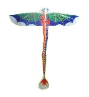 Kolorowy latawiec z wizerunkiem smoka do puszczania podczas słonecznych, trochę wietrznych dni. Produkt zapakowany w przezroczysty worek. Produkt dla dzieci od 3 lat.