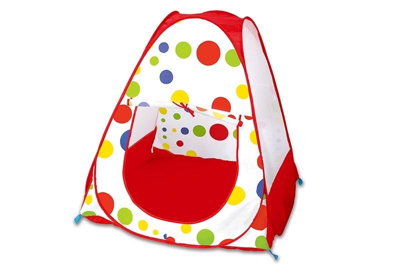 SKŁADANY NAMIOT DLA DZIECI WYKONANY Z NIEPRZEMAKALNEGO MATERIAŁU, ŁATWY I SZYBKI MONTAŻ, ELASTYCZNY STELAŻ, WYM. PO ROZŁOŻENIU: 90 X 90 CM., PAKOWANY W TORBĘ O ŚR. 31 CM., 3+ číst celé