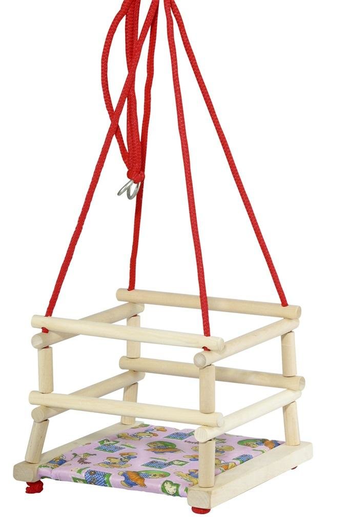 Zestaw składa się z huśtawki szczebelkowej oraz poduszki, dzięki której dziecko może siedzieć na huśtawce wygodnie i bezpiecznie. Produkt wykonany jest z naturalnego drewna. Maksymalne obciążenie 20kg. Kolorystyka poszczególnych elementów może ulec zmianie.