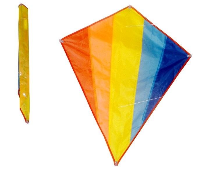 Kolorowy latawiec w paski do puszczania podczas słonecznych, trochę wietrznych dni. Produkt zapakowany w przezroczysty worek. Produkt dla dzieci od 3 lat.