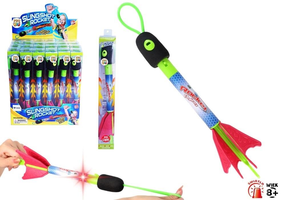 Tato barevná raketa je vybavena pružnou gumou, která umožňuje vystřelit hračku na velkou vzdálenost. Využití LED osvětlení činí hru čarovnou i za šera nebo tmy, což dodává hře zcela nový rozměr. Bezpečnost zajišťují měkké materiály, takže si děti mohou hrát bez starostí. Latająca rakieta je vhodná pro děti od 8 let a podporuje zdravou fyzickou aktivitu na čerstvém vzduchu.