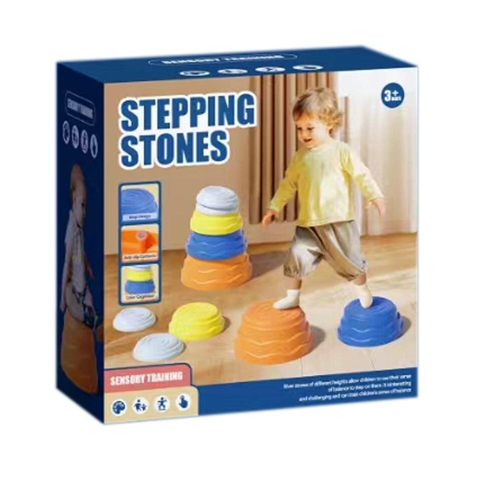 Zestaw składa się z pięciu "kamieni" w różnych kolorach o różnej wielkości i wysokości. Zadaniem dziecka jest przechodzenie z jednego "kamienia" na drugi zachowując balans i starając się nie spaść z "kamieni" na podłogę. Zabawka rozwija koordynację ruchową oraz...