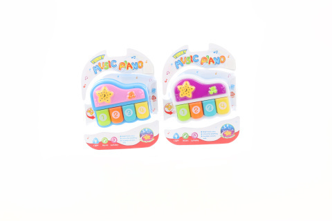 Plastové piánko. Hraje a vydává tóny a melodie ukolébavek. Napájení na 2 AAA baterie (jsou součástí balení). Rozměry piánka cca 12 x 10 x 4 cm. Rozměry balení cca 22,5 x 17 x 5 cm. Věk 18m+ číst celé