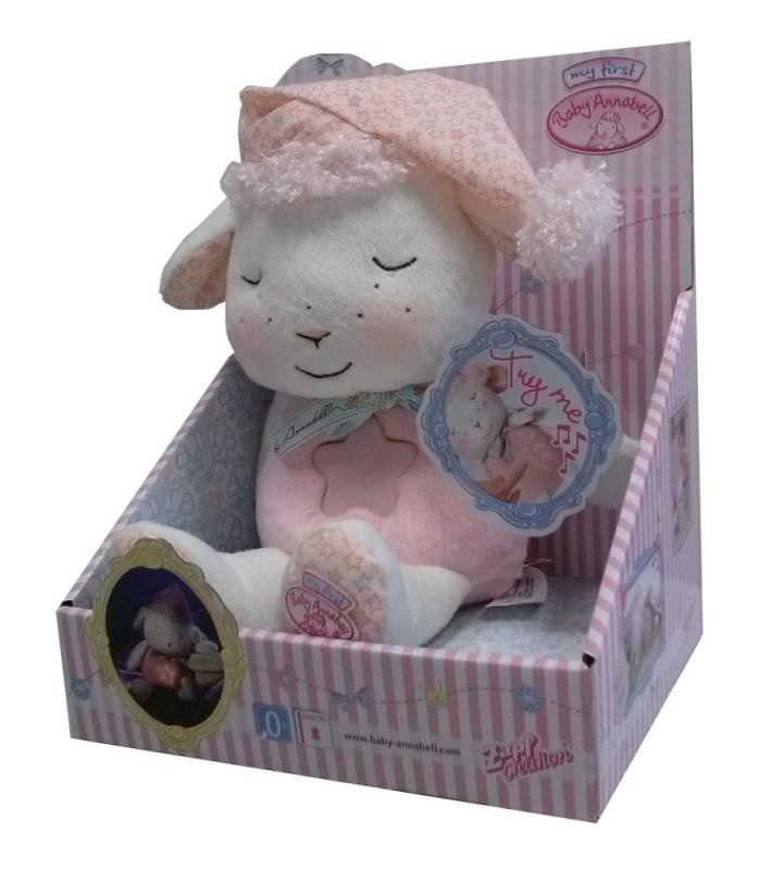 Měkoučká ovečka z řady "my first Baby Annabell" je určena pro ty nejmenší holčičky, aby se jim hezky usínalo. Ovečka je krásně hebká a děti si ji tak oblíbí jako skvělou kamarádku na mazlení. Na bříšku má ovečka růžovou hvězdičku, která se po stisknutí rozsvítí tlumeným světlem a zároveň se rozehraje příjemná ukolébavka. Hvězdička v průběhu ukolébavky mění barvy. Ovečku je možné prát v ruce.Velikost: 32 cmVěk: 0+. Baterie: 2 x R03 (AAA). Součástí balení.