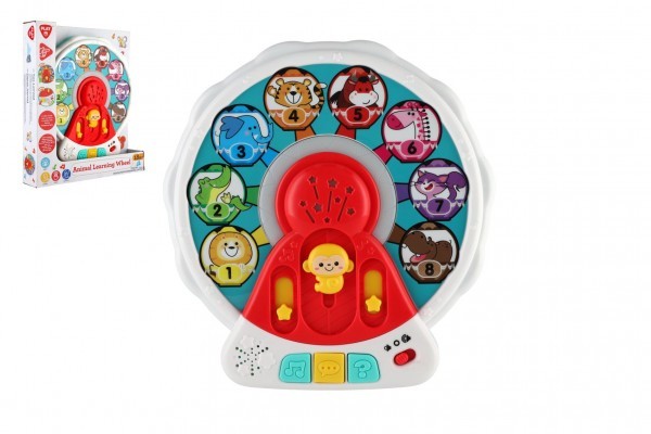 Edukační kolo se zvířátky plast 21cm na bat. se zvukem, světlem EN mluvící v krabici 22x25x5cm 18m+