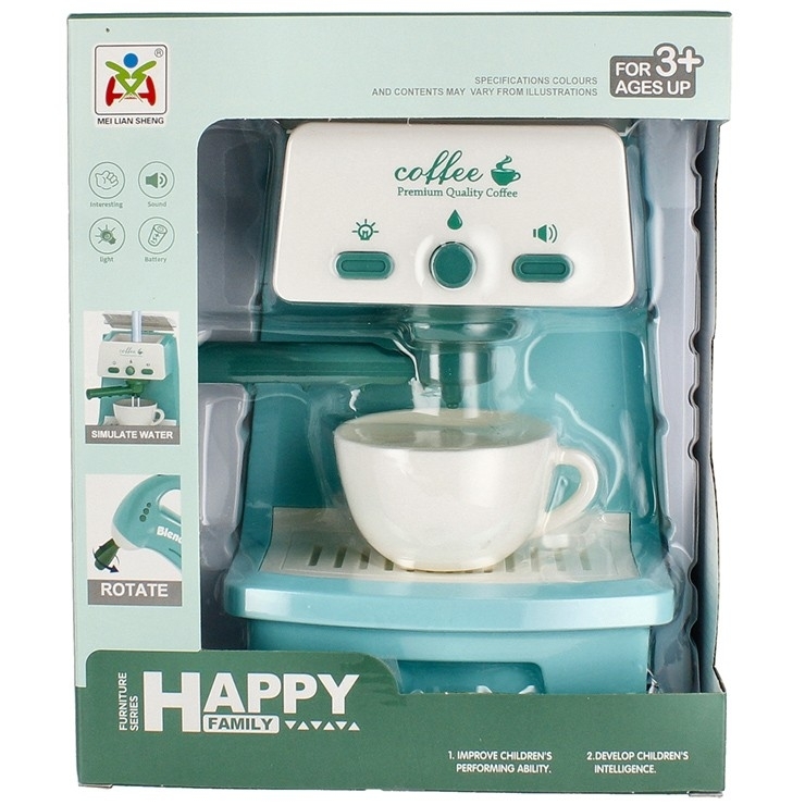 Stroj má světelné a zvukové efekty, vaření kávy, bublající vodu, má nádobu na vodu. Obsah sady: kávovar, hrnek. Rozměry jsou 12x17x10