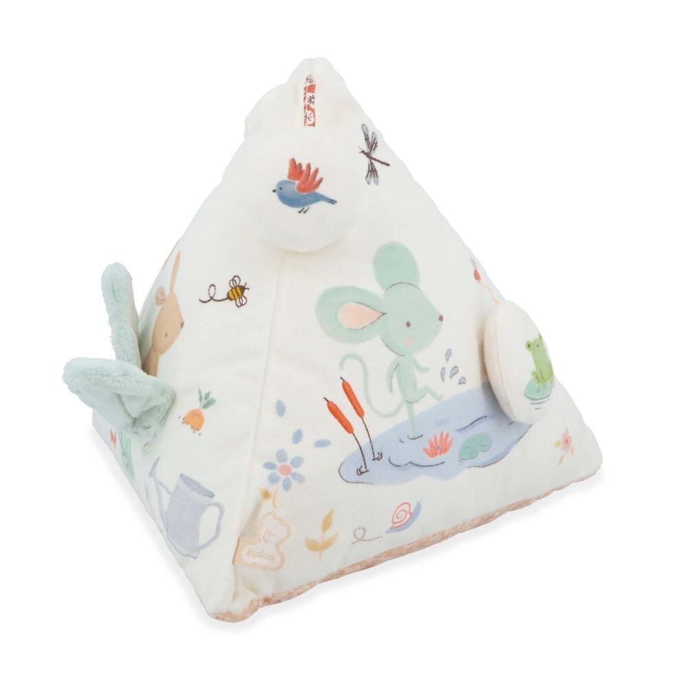 Textilná hračka - prvá pyramída pre bábätko venovaná ich skúmaniu zvukov! Táto hračka s aktivitami je ideálny už od narodenia a jemne stimuluje sluch, zrak a motoriku dieťaťa. Táto látková pyramída, ktorú môžete umiestniť do ohrádky alebo na hraciu podložku vášho dieťatka na spoločné hranie, ponúka jemné aktivity na objavovanie na troch stranách. Šuštiaci papier, ktorý praská, zvonček, ktorý veselo cinká... Spoznali ste známe detské riekanky znázornené na každej strane tejto hračky? „Zelená myška“, „Môj zajačik“ alebo „Svieti, svieti malá hviezda“ môžete ich bábätku spievať do rytmu. :) Vážka poletuje nad jazierkom, zajac sa skrýva v kapuste a mnoho ďalších vecí ožíva na dosah ruky v detskom svete! S mnohými dotykovými prvkami, zatrasenie, počúvanie alebo praskanie-šušťanie je táto látková pyramída ľahká a jednoducho sa s ňou manipuluje.Meria 25 cm a je vyrobená zo 74 % z recyklovaných materiálov, vrátane výplne (recyklovaný polyester, mikrozamat, popelín). Vždy venujeme veľkú pozornosť výberu materiálov, z ktorých sú naše produkty vyrobené, pre zábavu a mäkké darčeky pri narodení bez kompromisov! Túto hračku na prebúdzanie zvuku môžete prať v práčke na 30°. Táto pyramída so zvukovými aktivitami je súčasťou kolekcie Petites Chansons od Kaloo: rad venovaný prebúdzaniu sa zvukom, vyvinutý v spolupráci s tímom psychomotorických terapeutov a zložený z rôznych zvukov na stimuláciu dieťaťa.