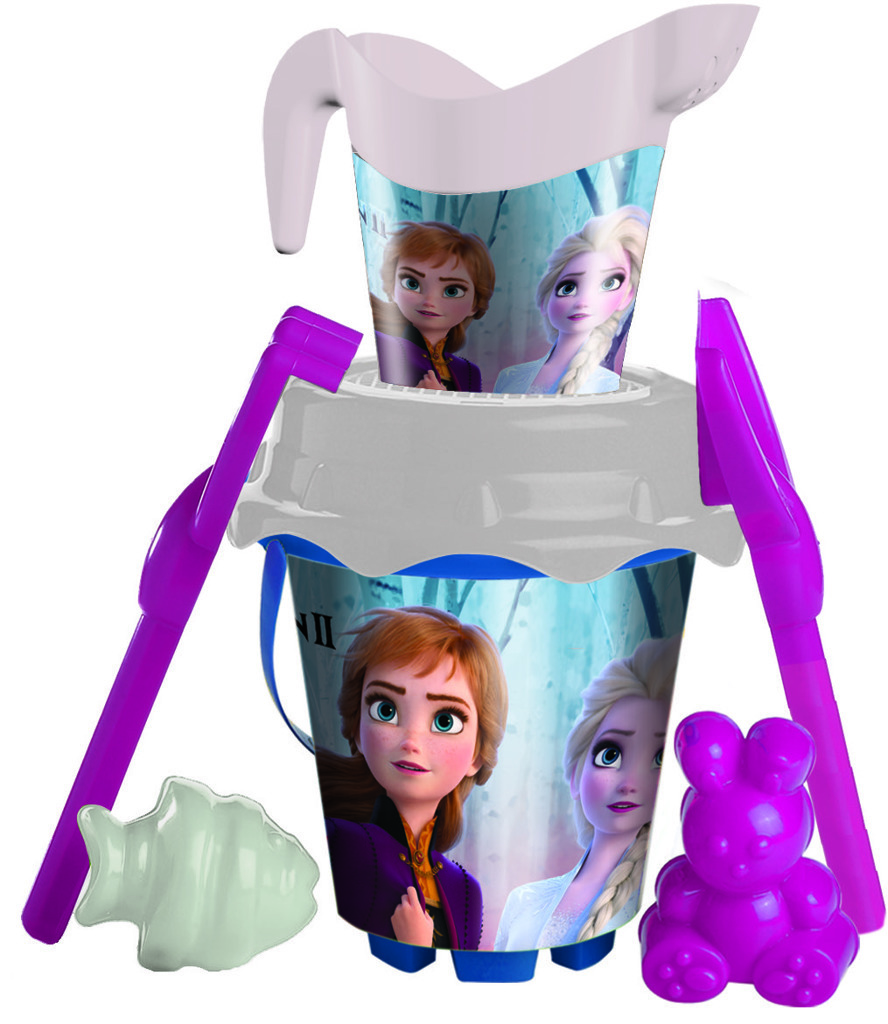 Objevte radost z tvoření na písku s touto kvalitní sadou, která je nejen praktická, ale i krásně vzhledově laděná s populární tématikou Ledového království 2. Sada obsahuje vše, co malé ručičky potřebují k vytváření hravých a originálních děl na pískovišti - lopatičku, hrabičky, sítko, dvě bábovky a konvičku, vše v designu oblíbených postaviček. Díky průměru kyblíčku 18 cm nabízí dostatek prostoru pro stavění a hraní. Vyrobeno z kvalitního plastu ve Španělsku, což zaručuje odolnost a bezpečnost při hře.