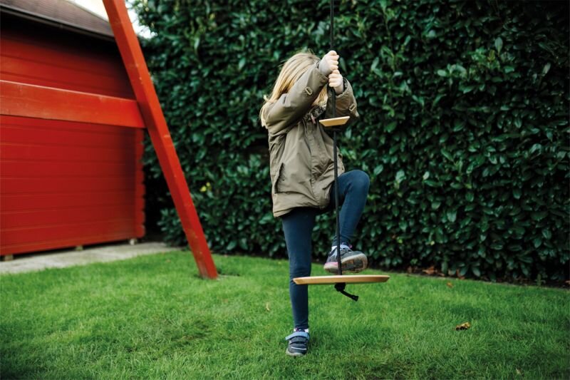 - Integrované lano na lezení s třemi dřevěnými stupínky pro zábavné posilování.