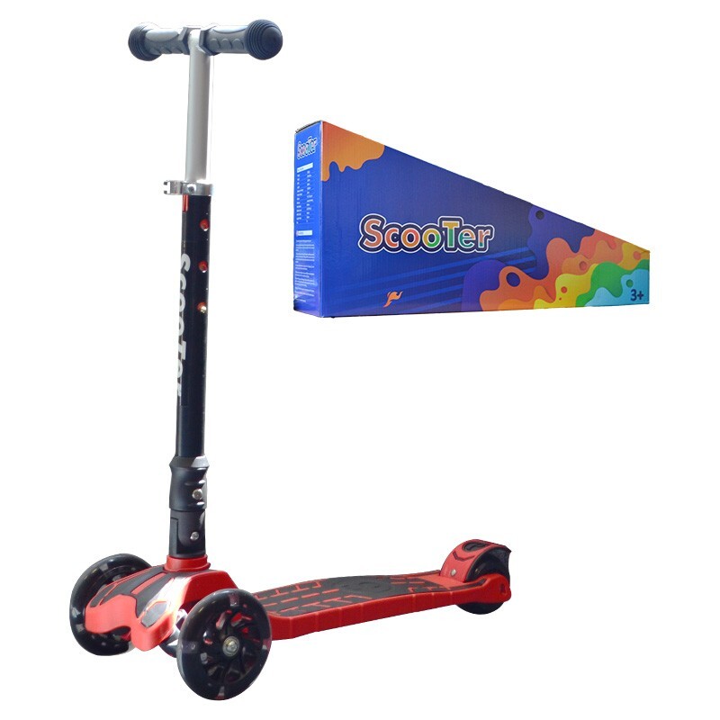 Dětská tříkolová koloběžka svítící - černo-červená je ideální volbou pro malé dobrodruhy, kteří milují pohyb a zábavu. Díky svítícímu zadnímu kolečku se z vašeho dítěte stane hvězda každého hřiště, a to nejen za dne, ale i za šera!