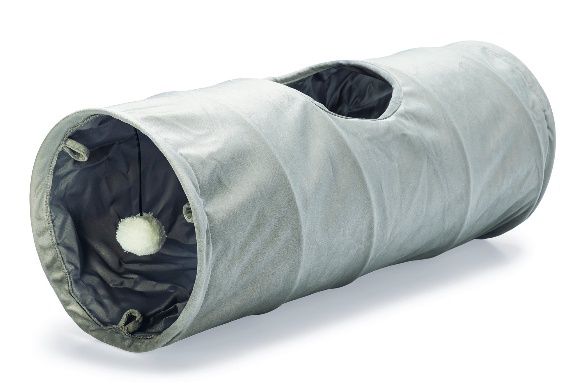 Elegantní tunel Cylla zabaví Vašeho domácího mazlíčka na celé hodiny. Vaše kočka se bude ráda v tunelu schovávat nebo jím probíhat. Tunel má otvor nejen vpředu a vzadu, ale Vaše kočka může také uniknout z tunelu otvorem uprostřed. Přidaná hračka ve formě zavěšeného chlupatého míčku se postará o extra zábavu. Zabudované kovové kruhy udržují tunel otevřený a napnutý. Kočičí tunel Cylla má zvenku krásnou sametovou látku, díky které se krásně hodí do každého interiéru a můžete jej sladit s různými trendy bydlení. Už si Váš chlupatý mazlíček dohrál? Pak můžete tunel snadno složit naplocho a uložit pro úsporu místa.