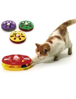 Hračka pro kočky talíř plast oboustranný s míčkem je skvělý způsob, jak zaměstnat Vaši kočku a vytvořit u ní zvídavou a hravou náladu! Průměr hračky je 24 cm. Prostřednictvím mnoha otvorů na hračce se Vaše kočka bude snažit zachytit míček uvnitř. Kočka bude stále nadšená opojnou vůní šanty, kterou vyzařuje míč umístěný mezi talíři.