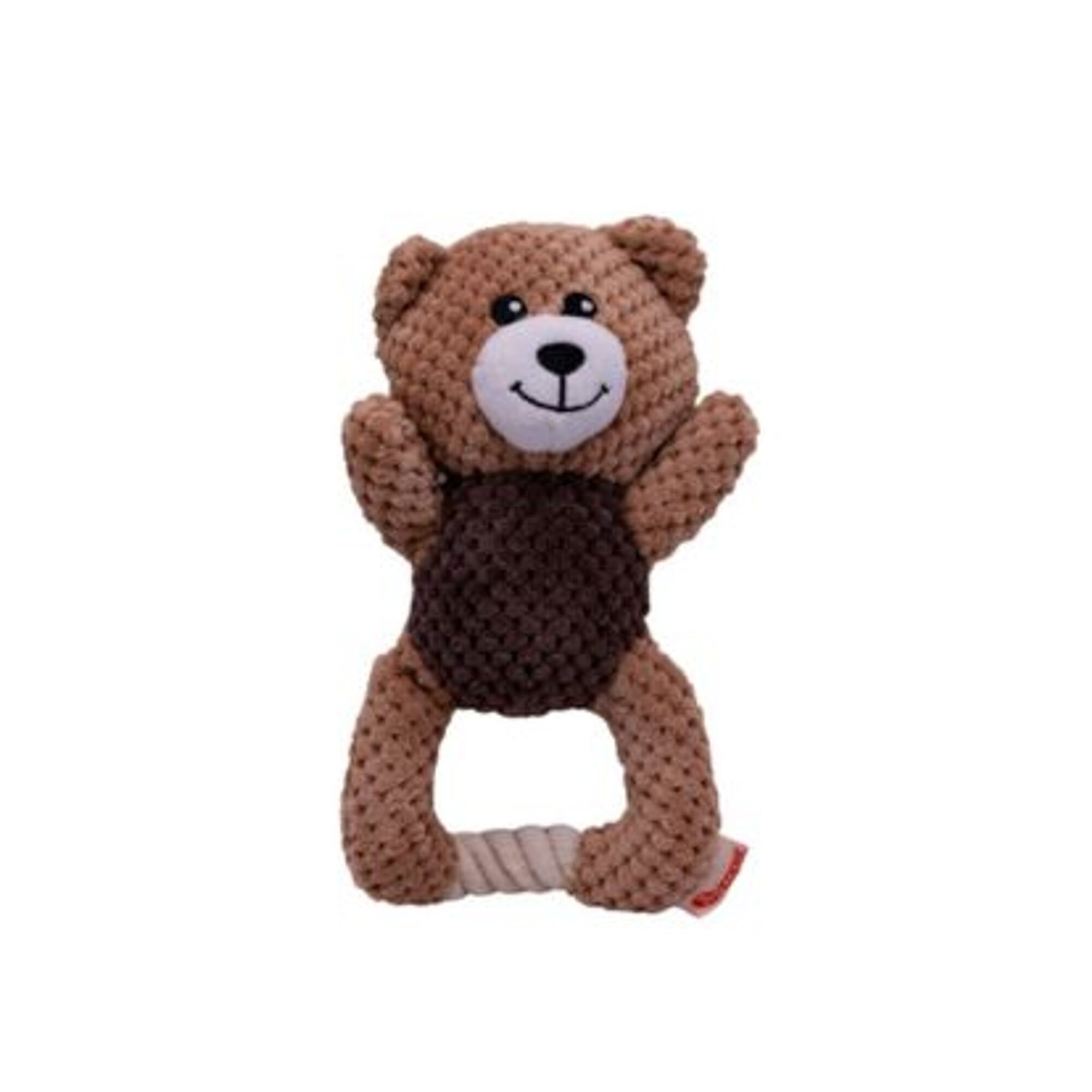 Hračka pro štěňata vyrobena z měkké tkaniny, která je jemná a měkká na dotek a při delším používání nepoškozuje zuby ani dásně. Medvídek je vybaven vestavěným pískacímzařízením, které vydává zábavný zvuk pokaždé, když ho mazlíček zkousne, a udržuje tak pejsky v zaujetí a zábavě. Žvýkací hračku lze používat v různých prostředích, ať už jde o vnitřní nebo venkovní aktivity.