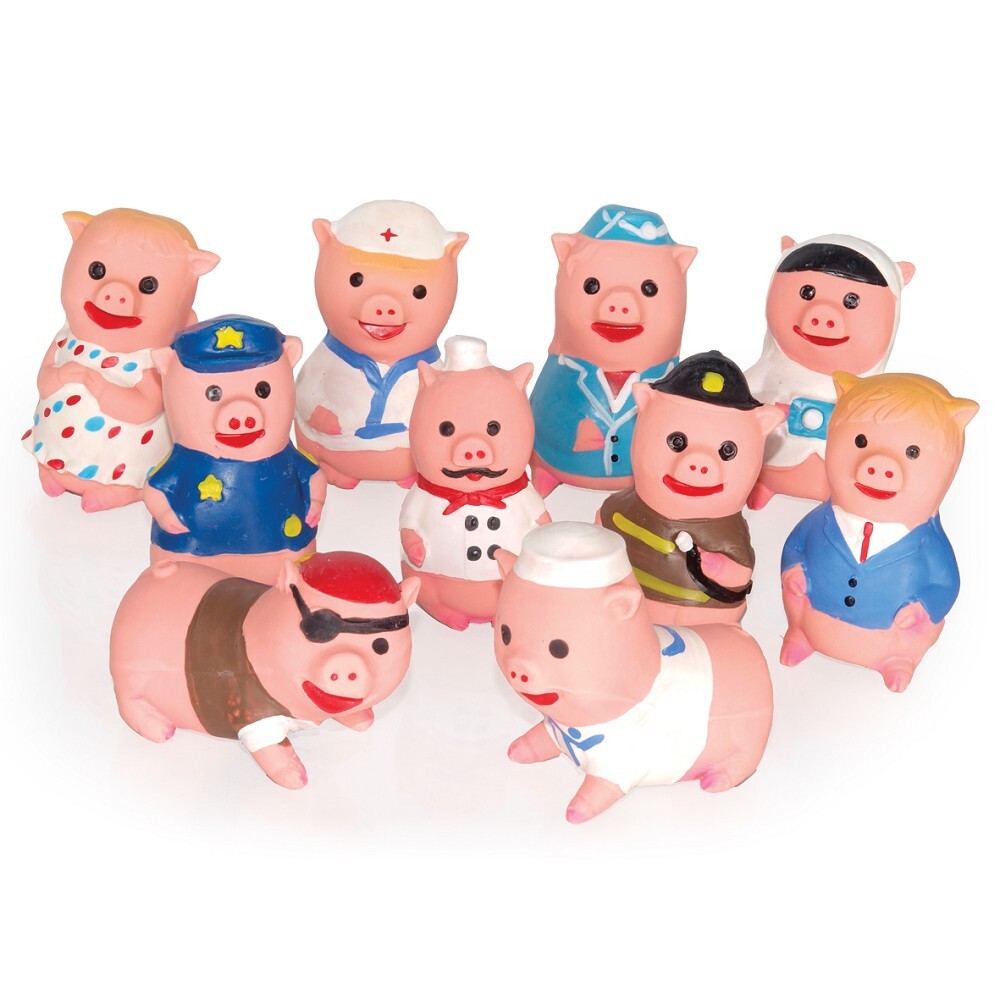 Malé latexové hračky se zvukem - mini prasátka představující různé profese.Balení: 10ksVelikost: 8cm