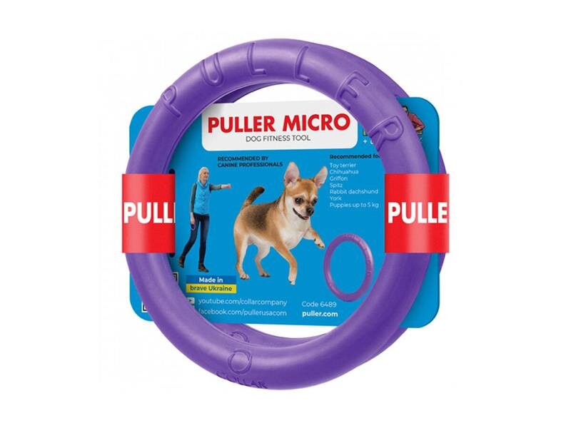 Dopřejte svému psovi zdravou dávku každodenního pohybu a zároveň posilujte své pouto! Puller Micro je inovativní hračka určená pro malá plemena psů, která zapojí všechny svalové skupiny vašeho mazlíčka. Jeho průměr je 12,5 cm a tloušťka je 1,5 cm. Sada obsahuje dva kroužky, které vám umožní provádět speciální sady cvičení a maximalizovat efektivitu tréninku. Výrobek je vhodný pro taková plemena jako Toy teriér, Čivava, belgický grifonek, špic, králičí jezevčík, York a štěňata do hmotnosti 5 kg.