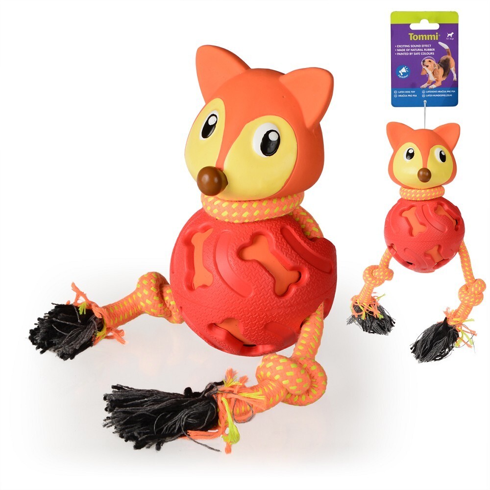 Zábavná pískací hračka ve tvaru lišky spojuje hned tři prvky do jedné hračky. Tělo ve tvaru gumového míčku usnadňuje uchopení a láká psa ke hře. Pevný bavlněný provaz je vhodný pro přetahování i žvýkání, zatímco pískací efekt podporuje zájem a aktivitu.