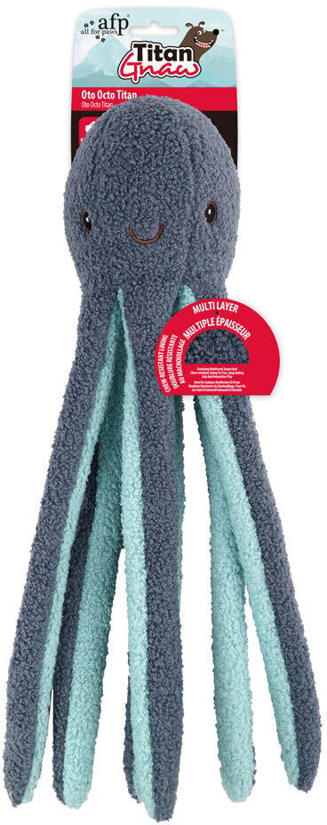 Chobotnice z kolekce Titan Gnaw je odolná plyšová hračka, která byla navržena tak, aby obstála i u psů s pořádnou dávkou energie. Spojuje v sobě měkký, na dotek příjemný plyš s odolným provedením. Díky zesíleným švům a podšívce vydrží déle než běžné plyšové hračky a stává se tak ideálním společníkem pro každodenní hraní.