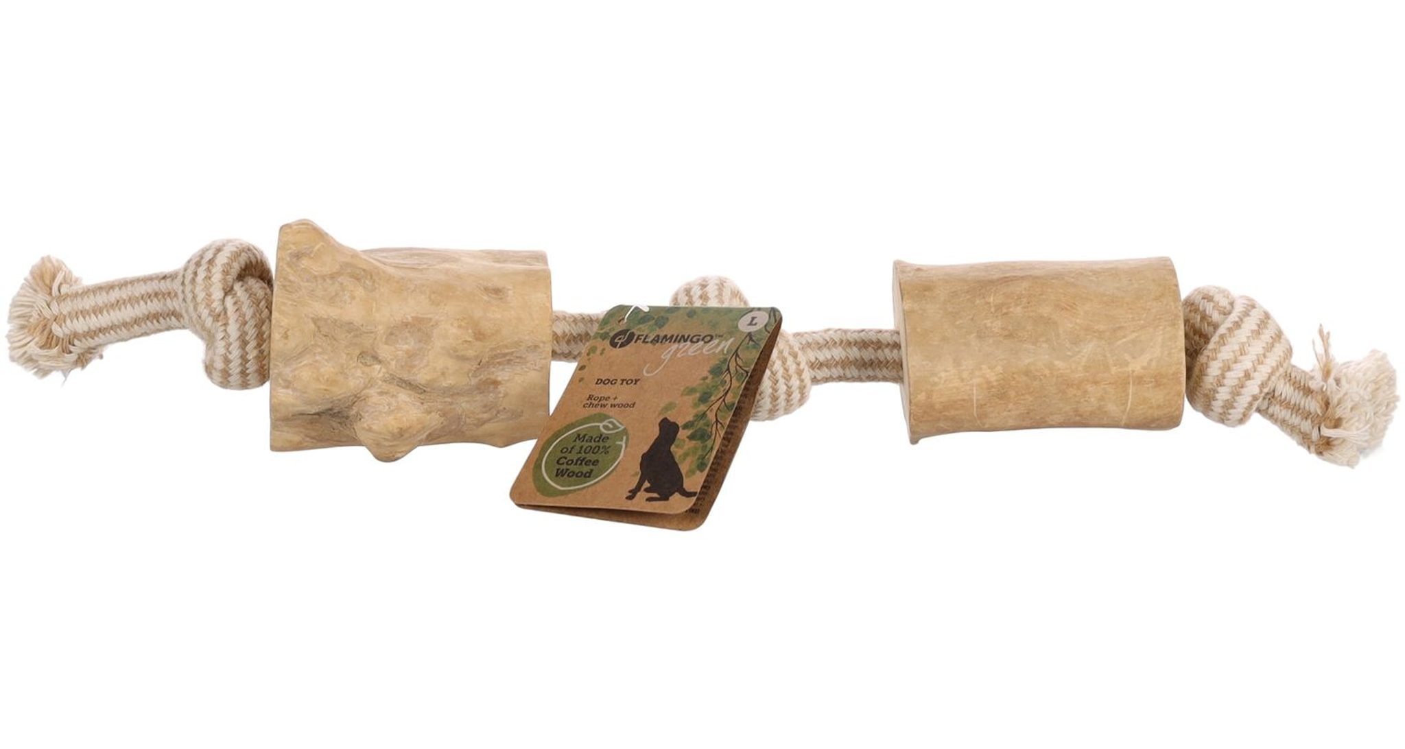 Bavlněné lano s přírodními kostmi ze dřeva kávovníku je vhodnou hračkou z přírodních materiálů, která spojuje hru s přetahování a také trochu toho pokousáníčka. Kost uspokojuje přirozenou potřebu žvýkání. Pes ho může přijímat, protože se jedná o zcela přírodní produkt, vhodný pro alergiky, bez umělých přísad a živočišných složek, jelikož neobsahuje kalorie, je výborná i pro psy s nadváhou. Některé malé části lze bez problémů spolknout a strávit.