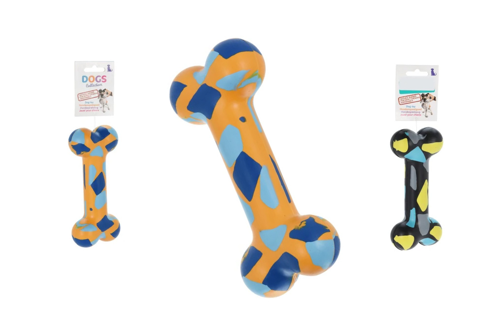 Žvýkací hračka je ideální pro psy, kteří rádi žvýkají a hrají si s hračkami. Pevná gumová kost o velikosti 18 cm je navržena tak, aby vydržela i se silnými skusy psa. Gumová kost je vyrobená z kvalitního a odolného materiálu, který je bezpečný pro psy ke žvýkání. Navíc tato hračka pro psy pomáhá udržovat zuby a dásně vašeho psa zdravé a čisté. Hračka je vhodná pro psy všech velikostí a plemenných typů. Díky své velikosti je ideální pro hrátky i pro soustředěnou práci s hračkou. Tato žvýkací hračka pro psy je také skvělá pro mentální stimulaci psa. Může být využita jako nástroj pro trénink a zlepšení soustředění psa. Nabízíme Vám tuto pevnou gumovou kost, abyste mohli vašemu psovi dopřát kvalitní a bezpečnou žvýkací hračku. Objednejte si tuto žvýkací hračku pro psy ještě dnes a užijte si společné chvíle se svým nejlepším přítelem. Dodáváme ve více barvách, vždy podle možnosti skladu náhodně. Hmotnost hračky je cca 412g.