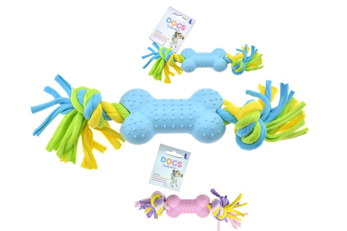 Tahle gumová kost je tou správnou volbou pro aktivní psy, kteří rádi žvýkají a hrají si. Kost je vyrobena z kvalitního a pevného gumového materiálu, což zaručuje její dlouhou životnost. V prostředku kosti prochází pletený provaz s třásněmi, což zvyšuje zábavu pro vašeho psa. Celková délka této hračky pro psy je cca 19cm, což ji dělá ideální pro menší a středně velké psy. Tento produkt je vhodný pro interaktivní hry s páníčkem i pro hry samostatné. S touto gumovou kostí si váš pes užije spoustu zábavy a vy se můžete těšit z pohledu na šťastného a spokojeného psa. Objednejte si ji ještě dnes a dejte svému psovi dárek, který si zamiluje!