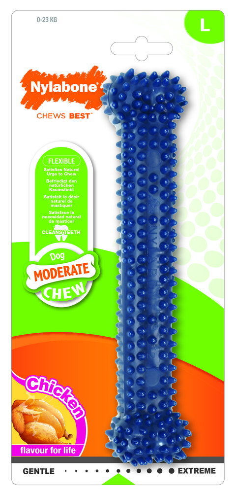 Moderate chew jsou vyráběny pro jemnější žvýkání. Uspokojuje přirozenou potřebu žvýkání. Jemné výběžky na hračce pomáhají čistit zuby a odstraňovat plak a zubní kámen. Pro náročné. Uspokojuje přirozenou potřebu žvýkání. Příchuť kuřecího masa.