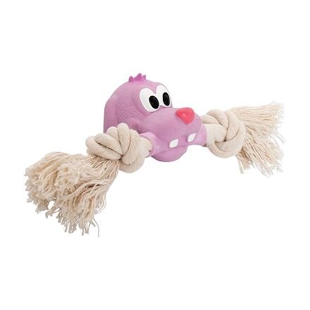 Psí hlava MINI s bavlněnou činkou, se zvukem, 5x18 cm, růžová/přírodní, HipHop