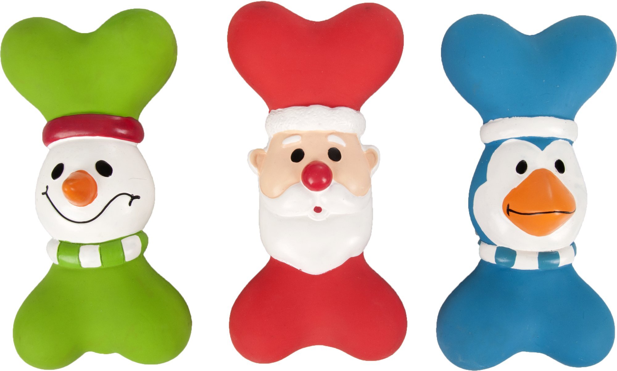 Tyto vánoční pískací kosti jsou ideální nejen pro sváteční hry! Vyrobené z latexu, se zabudovaným pískátkem, ve 3 designech - sněhulák, Santa, tučňák. Který z nich získáte, je překvapením, ale hodiny hraní jsou zaručeny :)