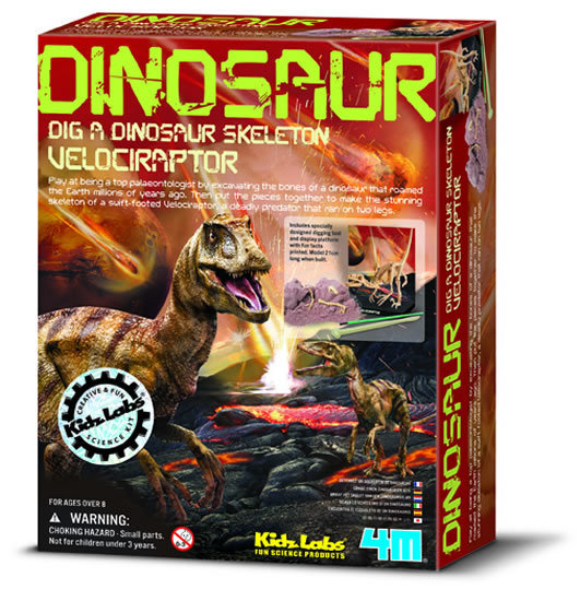 Set pro vykopání a sestavení kostry dinosaura zalité do sádry. Obsahuje potřebné nástroje. číst celé