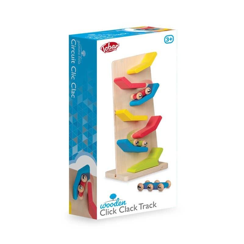 Drewniane Spadające Samochodziki to trzy małe pojazdy i pionowy tor. Konstrukcja składa się z pionowej ściany z rampami ułożonymi naprzemiennie, tak by zjeżdżające z góry samochodziki przeskakiwały płynnie z jednej strony na drugą, obracając się przy tym w iście kaskaderskim stylu. Zestaw zawiera trzy samochodziki, w tym jeden z sześcioma kołami i elastycznym złączeniem pośrodku (dzięki czemu zapewnia jeszcze lepsze widowisko). Cały zestaw wykonany jest z drewna, będąc przyjazną zabawką również dla małych dzieci.