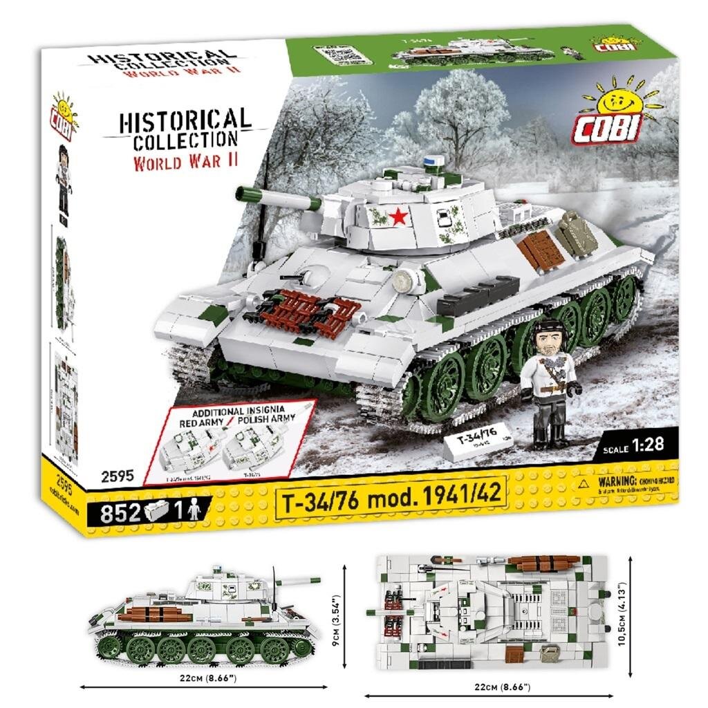 T-34/76 je ikonický sovětský tank, který významně ovlivnil průběh II. světové války. Tento model v měřítku 1:28 skládající se z 852 kvalitních kostiček nabízí věrnou repliku s pohyblivými prvky, včetně otáčivé věže a kanonu, funkční trakce pásů a možnosti po odejmutí věže nahlédnout do interiéru, kde lze umístit i malý model motoru. Model je zpracován s důrazem na historickou přesnost a detaily - nechybí kvalitní trvalé potisky znázorňující opotřebení a autentické označení včetně volby mezi polskými a sovětskými symboly. Součástí balení je rovněž figurka a označovací tabulka.