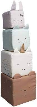 Látkové měkké kostky se spoustou barev, detaily a zvukovými efekty, které stimulují smysly zraku, hmatu a sluchu dítěte.
