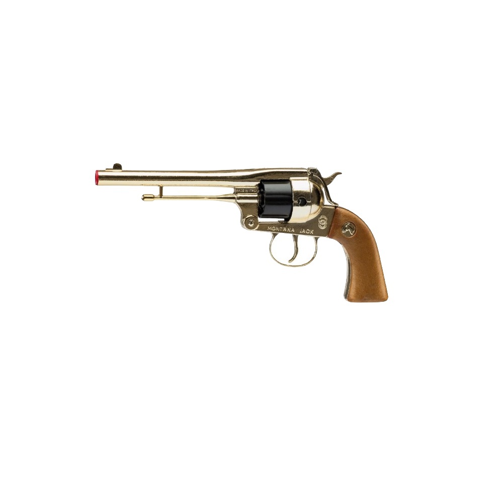 Kovbojská kapslíková pistole/kolt kovová, 12 ran (pistole na kapslíky, na kapsle) barva zlatá, délka 26 cm. Počítadlo výstřelů! Tato propracovaná pistole/kolt Montana Jack kovová, patří mezi oblíbené dětské kapslíkové zbraně. S touto parádou budeš hvězdou každého karnevalu.