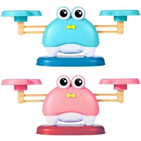 Ważenie na wadze: Waga szalkowa w kształcie kraba zachęca do zabawy swoim uroczym wyglądem oraz ciekawymi możliwościami. Zabawka działa jak prawdziwa waga, ucząc dzieci liczenia w przystępny dla nich sposób. Każdy z klocków-cyferek ma inną ciężkość, najlżejsza jest 1, a najcięższa 10. Muszka, którą nosi krab, przechyla się wraz z ciężarkami i pokazuje która strona jest cięższa. Dzięki temu rozwiązaniu, maluchy mogą poznawać wartości cyfr oraz która z nich jest mniejsza lub większa. W zestawie znajdują się karty, na których pokazana jest cyferka i ilość krabów, która jej odpowiada. Zachęca to do sprawdzenia na wadze, czy faktycznie cyfra 3 ma taką samą wagę jak 3 kraby. Taka zabawa rozwija zdolności poznawcze i logikę.