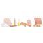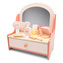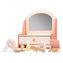 Krásný dřevěný kosmetický stolek, který povzbudí kreativitu a nápaditou hru vašich dětí. Tento elegantní toaletní stolek s otočným zrcadlem nabízí malé princezně vše, co potřebuje k tomu, aby si mohla napodobovat maminku při líčení a úpravě vlasů. Sada obsahuje 7 kosmetických produktů - kartáč na vlasy, rtěnku, lahvičku parfému, fén, lak na nehty, paletku očních stínů a štětec. Praktický šuplík umožňuje snadné uspořádání veškerého příslušenství, takže po hře zůstane vše uklizené a připravené na další použití.