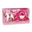 Tento půvabný bílý kůň s dlouhou, jemnou hřívou doprovází krásný růžový kočár, který dokonale zapadá do světa dětské fantazie a povídek. Děti si mohou hřívu upravovat díky přiloženým hřebínkům, což podporuje jejich kreativitu a jemnou motoriku.