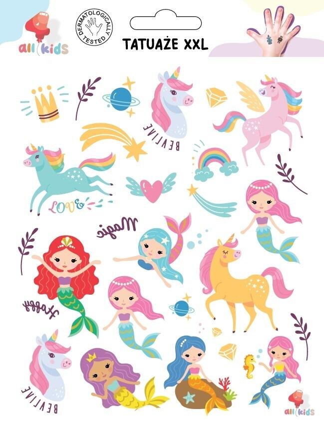 Tatuaże zmywalne dla dzieci Jednorożce syrenki XXL