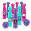 Set obsahuje 9 kuželek v trendy růžové, fialové a tyrkysové barvě, dvě míčky a sadou samolepek s oblíbenými postavičkami z Kouzelného Kocího Domku Gabi. Hra přináší nejen zábavu, ale i rozvoj důležitých dovedností dětí - pomáhá jim zlepšit koordinaci oko-ruka, rovnováhu, prostorové vnímání i schopnost koncentrace. Díky lehkým a odolným materiálům je hra bezpečná a snadno přenosná v praktickém balení s držadlem, které udrží pořádek i po skončení hry.