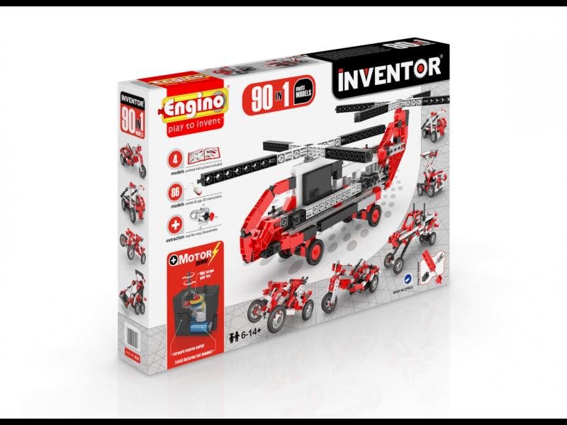 Zestaw klocków umożliwiający zbudowanie 90 modeli, dodatkowo zestaw zawiera silniczek elektryczny zasilany bateriami, który napedza ruchome elementy, zawiera instrukcje do zbudowania 4 modeli, 86 kolejnych instrukcji do ściągnięcia ze strony internetowej, +6